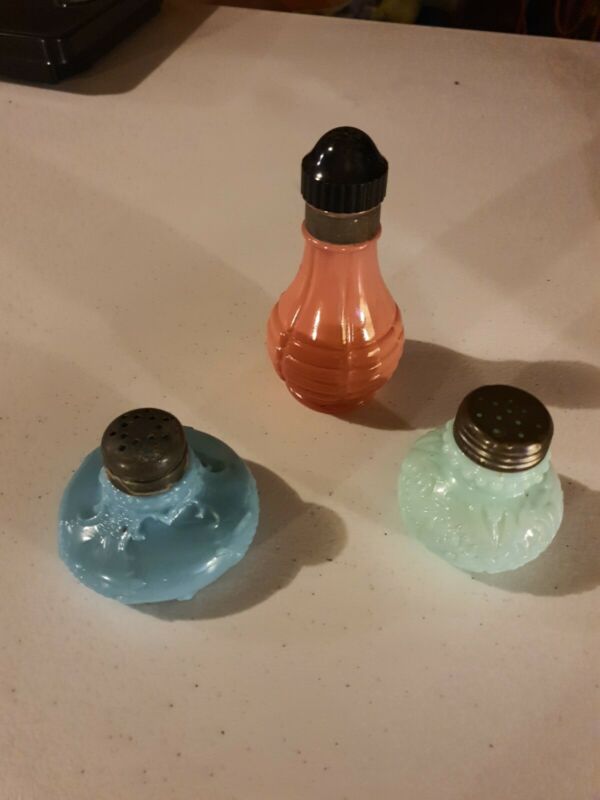 Vintage 1930''s Milk Glass Salt/pepper Shakers Lot Of 3