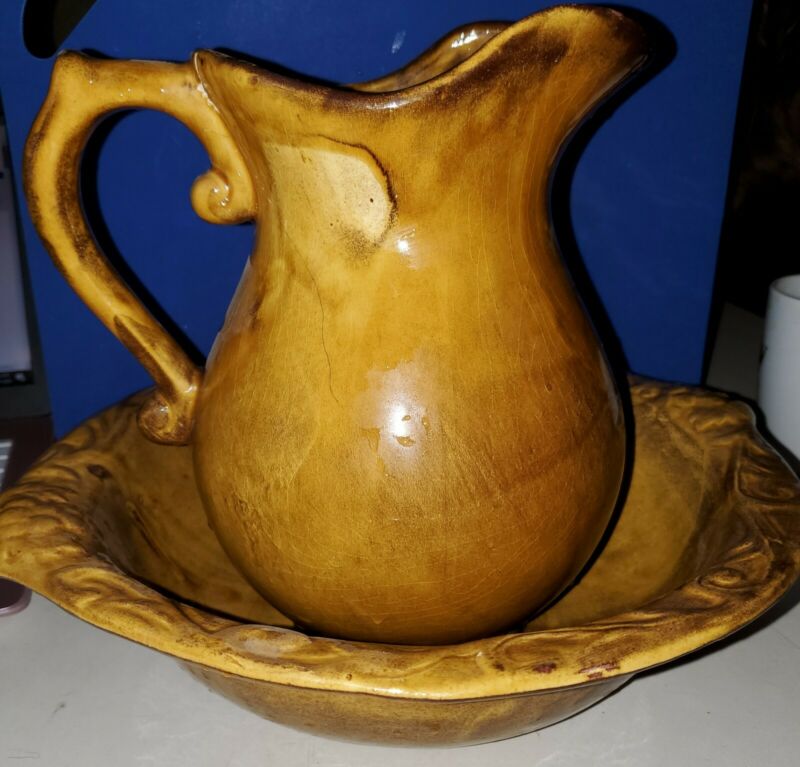 Title (ebay affiliate link): Vintage Farmhouse look Pitcher and Bowl Wash Basin Ceramic/clay - Beautiful