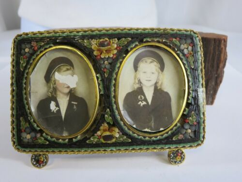 Antique Micro Mosaic Inlaid Art Glass Easel Miniature Picture Frame Italy RP9
