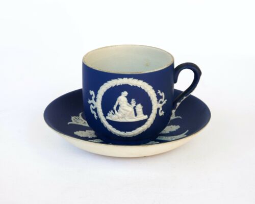 Adams Tunstall Dark Cobalt Blue Jasper Dip Cup and Saucer, c. 1900