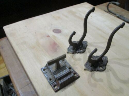 Title (ebay affiliate link): TWO ANTIQUE CAST ORNATE COAT HOOKS WITH MATCHING DOOR LATCH