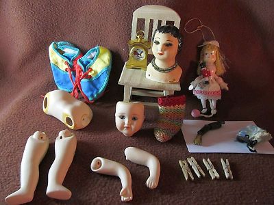 Title (ebay affiliate link): Lot Doll Parts Furniture Clock Shoes Antique Head Arm +