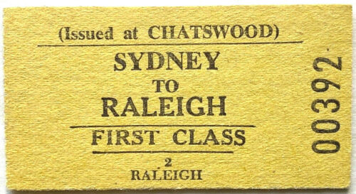 Title (ebay affiliate link): NSWR Ticket - SYDNEY to RALEIGH (Iss. at CHATSWOOD) - 1st Class Single