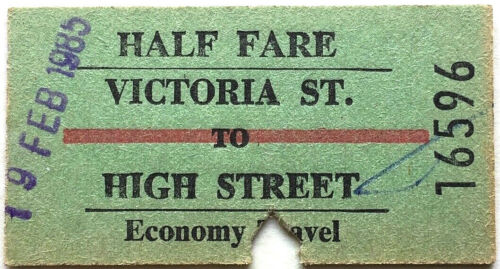 Title (ebay affiliate link): NSWR Ticket - VICTORIA ST. to HIGH STREET - 1985 Half Fare Economy Single