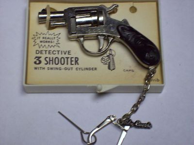 VINTAGE TOY CAP GUN IN CASE, ON KEY CHAIN, 3 SHOOTER !!