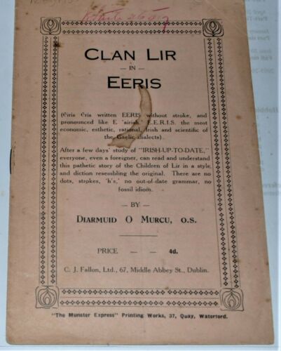 Title (ebay affiliate link): CLAN LIR IN ERRIS DIARMUID O MURCU 1ST EDITION PB AS GAEILGE