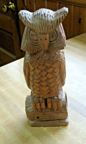 Vintage Hand Carved Wood Figure Figurine Owl 8.25" HLE