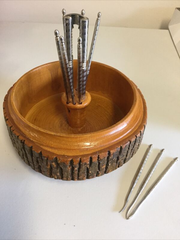 Ellwood Rusticware Wood Nut Bowl w/ HMQ Nucracker and Picks Vintage Mid-Century