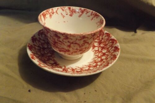 Title (ebay affiliate link): Antique Soft-paste Porcelain Handleless Red Sponged Spatterware Teacup & Saucer