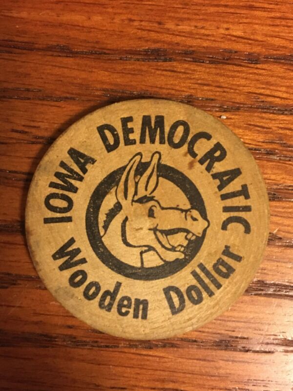 Title (ebay affiliate link): Vtg Iowa Democratic Wooden Dollar Wooden Nickel "Use Good Cents Vote Democratic"