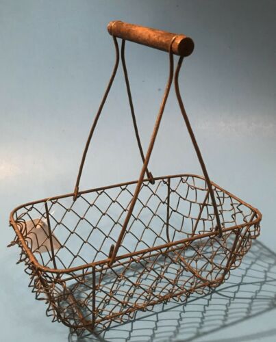 Title (ebay affiliate link): Rustic Brown Chicken Wire Gathering Basket - Primitive Country Decor