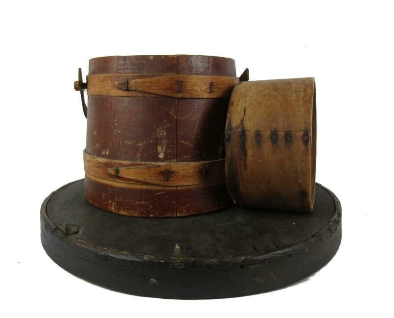 Title (ebay affiliate link): 19thC Antique 15" LID GRUNGY BLACK PAINT Firkin Tray Pantry Box Primitive Barrel