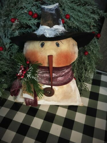*Primitive 11x8in FAT FAT SNOWMAN SNOWY FABRIC HANDMADE Country old rusty doll*