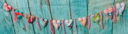 Title (ebay affiliate link): 10 Heart Garland Bunting Ornies Heart Shabby and Chic Pink Blue Hearts Handmade