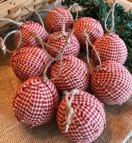 Title (ebay affiliate link): 10 Primitive BARN RED SMALL CK Fabric RAG BALLS Christmas Ornaments farmhouse A6