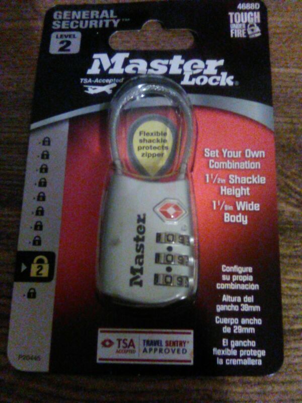 Title (ebay affiliate link): Master Lock TSA Accepted Cable Luggage Lock 4688D Silver Keyless Padlock Flex