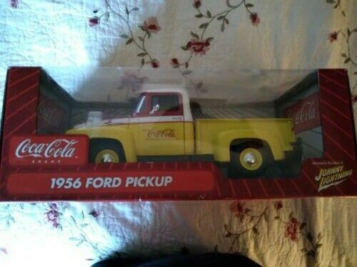 Title (ebay affiliate link): Johnny Lightning Coca Cola 1956 Ford Pickup. Never Opened. Die Cast 1.24