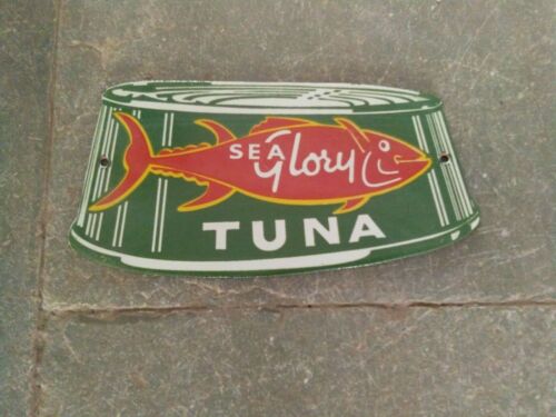 Porcelain Sea Glory Tuna Enamel Sign Size 7" x 3" Inches