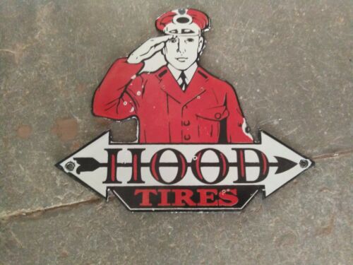 Porcelain Hood Tire Enamel Sign Size 6" x 7" inches