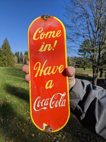 Title (ebay affiliate link): VINTAGE 1960''S COCA-COLA PORCELAIN ENAMEL DOOR PUSH SIGN "COME IN" SODA BEVERAGE