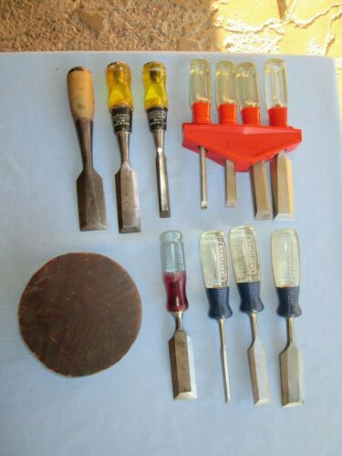 Title (ebay affiliate link): Vtg. Stanley & Craftsman & Buck Bros. Chisels Lot (11) & Round Sharp. Stone No R
