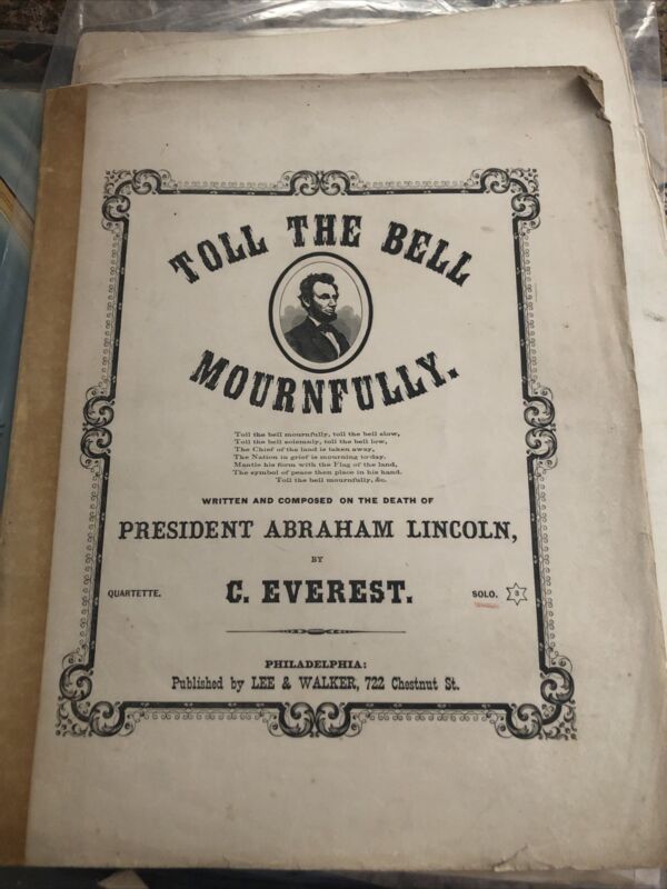 Title (ebay affiliate link): VINTAGE TOLL THE BELL MOURNFULLY MUSIC SHEET ABRAHAM LINCOLN C. EVEREST 1865
