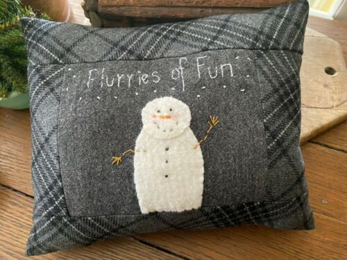 Primitive Stitchery Hand Stitched Christmas Ornie Snowman Flurries of Fun