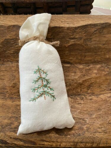 Title (ebay affiliate link): Primitive Stitchery Hand Stitched Christmas Tree Muslin Sack Ornie Farmhouse