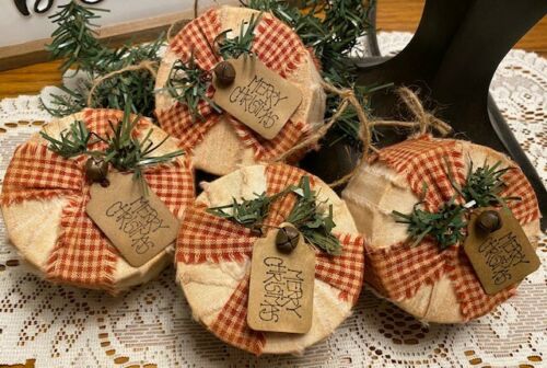 Title (ebay affiliate link): 4 Primitive Handmade Fat Peppermint Candy Homespun Christmas Ornaments farmhouse