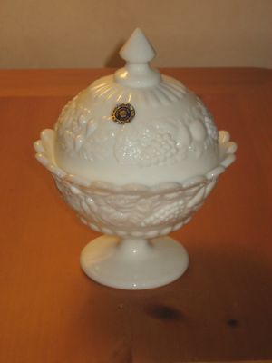 VTG WESTMORELAND DELLA ROBBIA MILK GLASS CANDY DISH NR