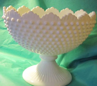 Large Milkglass Fenton Hobnail Pedestal Bowl