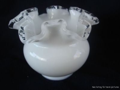 Fenton Silver Crest Rose Bowl White Milk Glass Crimped