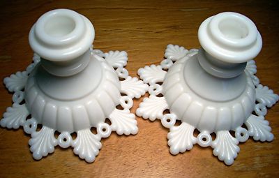 Westmoreland Milk Glass Ring and Petal Candle Holders