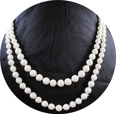 VINTAGE 4 1/2' LONG MILK GLASS BEADS NECKLACE WOW!!!
