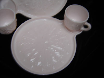 2 Shell Pink Milk Glass Hostess Snack Sets ~ Jeanette
