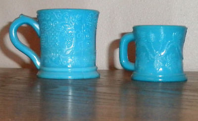Two Antique Opaque Blue Milk Glass Mugs