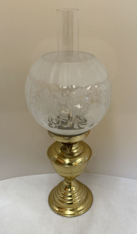 Vintage Brass Duplex Burner Oil Lamp With Glass Shade (D2)