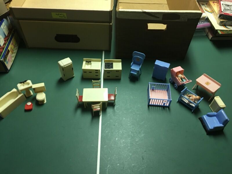 Title (ebay affiliate link): 22pc Jolly Twins Renwal LIVING ROOM SET Vintage Miniature Dollhouse Furniture