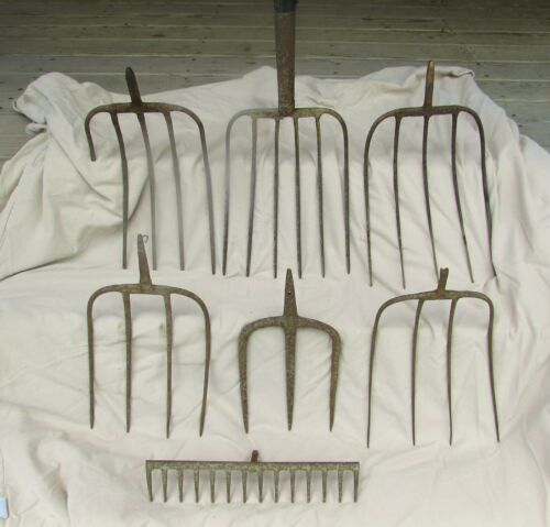 Title (ebay affiliate link): Vintage Farm Tools~Hay Forks~Garden Fork~Rake~Country Garden Decor! Repurpose!