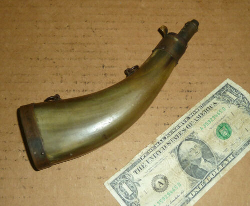 Vintage Black Powder Horn,Old Rifle,Pistol Tool,Hunting,Shooting,A.7-3/4",1 Pin
