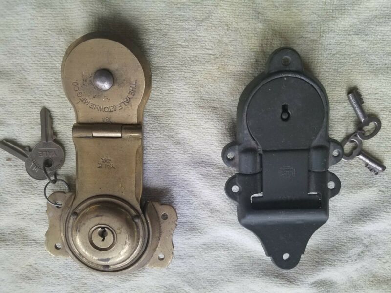 Title (ebay affiliate link): 2 Antique trunk locks, 1 Brass & 1 Steel unused with 2 keys each