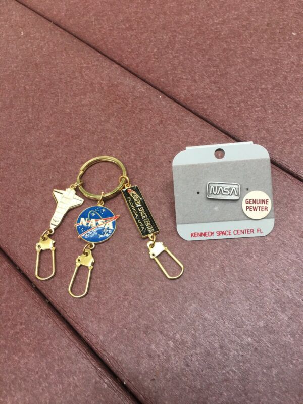 Title (ebay affiliate link): NASA~KENNEDY SPACE CENTER~SHUTTLE~VINTAGE PIN & KEY CHAIN