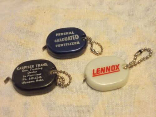 VINTAGE LOT OF 3 MINI ADVERTISING PLASTIC KEY CHAIN TAPE MEASURES !!
