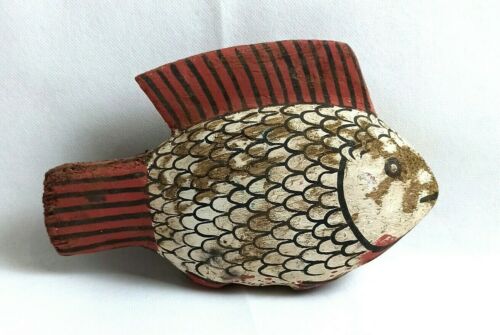 Ancient Antique Sculpture Fish Figurine Wooden Egyptian Statue Rare Bead Mummy