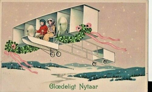 Danish New Year postcard, 1913 Biplane