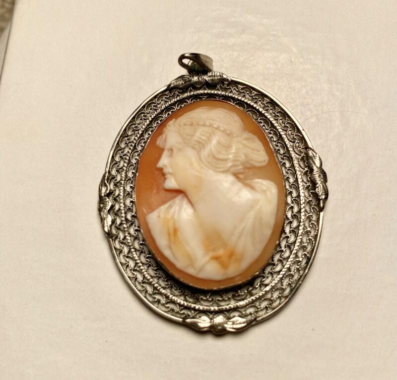 Title (ebay affiliate link): Antique Sterling Silver Carved Shell Cameo Pendant Beautiful Color Details Color