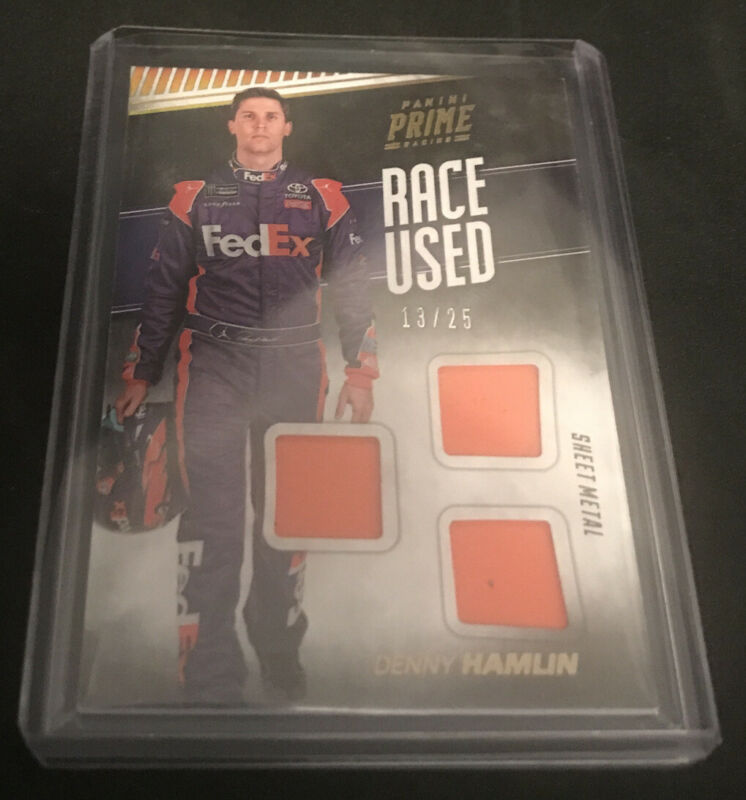 Title (ebay affiliate link): Denny Hamlin 2018 Panini Prime Triple Sheet Metal Card #13/25