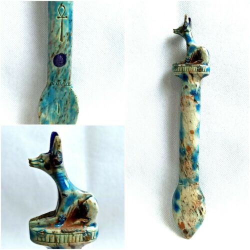 Title (ebay affiliate link): ANCIENT ANUBIS FAIENCE ANTIQUE EGYPTIAN STONE STATUE SPOON GLAZED AMULET 930 BC