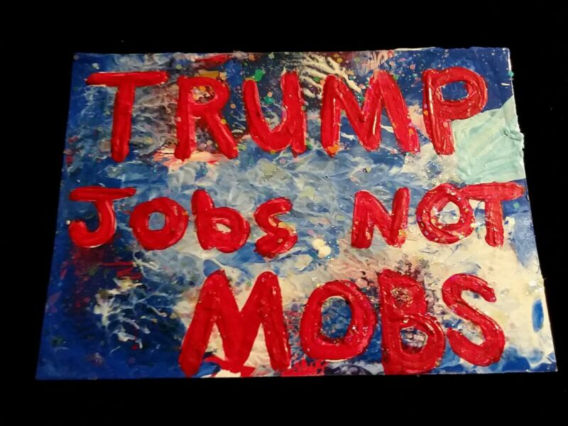 new JOBS NOT MOBS TRUMP 2020 painting ARTIST TRADING CARD ACEO politic USA brut