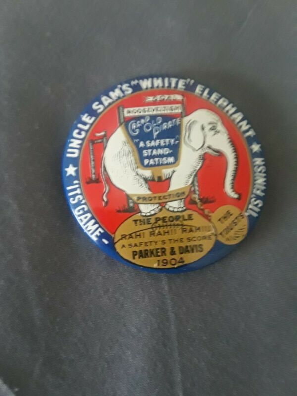 Title (ebay affiliate link): Vintage Uncle Sam''s White Elephant Parker Davis 1904 Political Button Pin